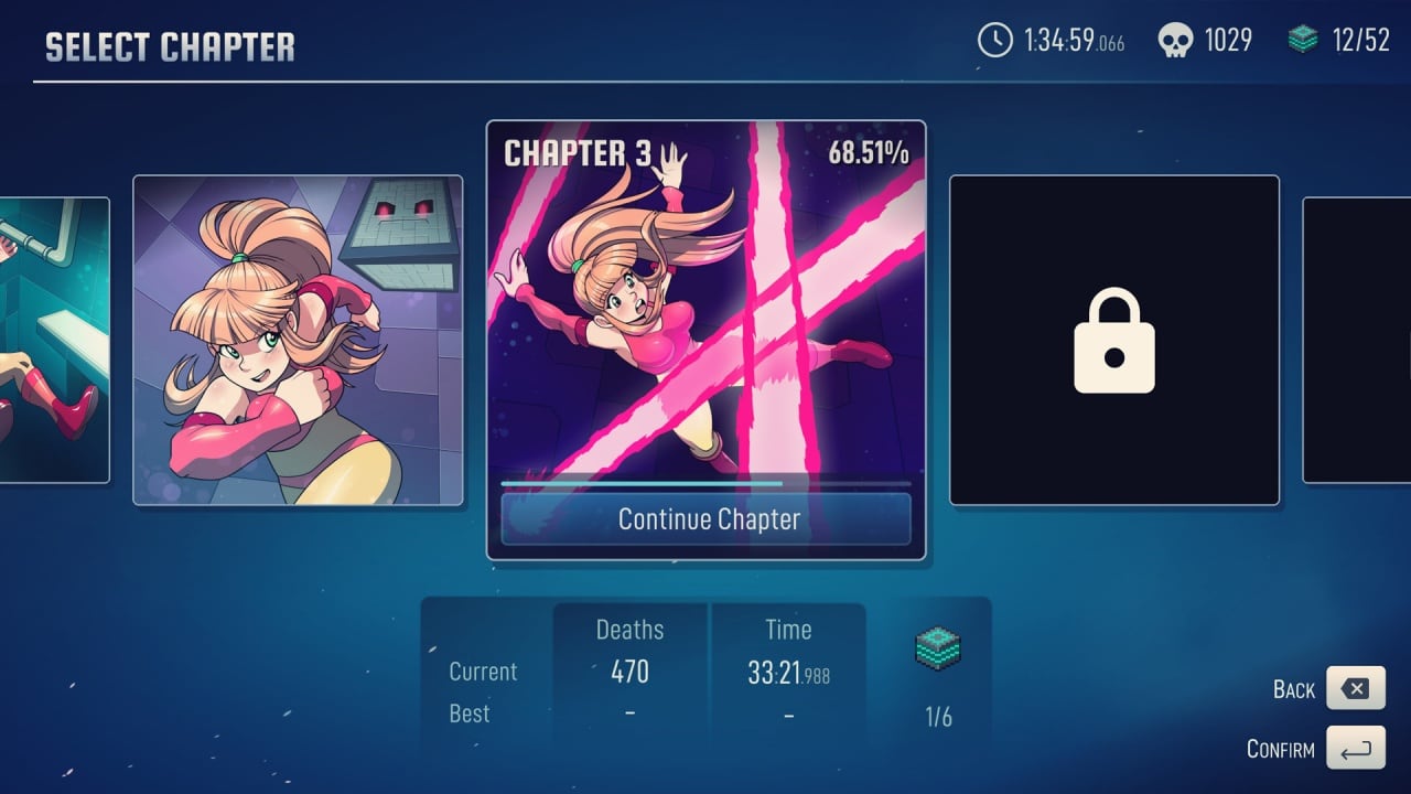 Прозвище героини - Санблейз. Она очень быстрая и молниеносная. Совершая рывок, требуется преодолевать пропасти, взрывчатки, шипы, дроны, электричество и множество других препятствий. Тренажер генерируется случайным образом. В Sunblaze рандомизируются помещения и задачи. Протагонистка может отталкиваться от стен, уворачиваться, высоко или далеко прыгать и т.п. Она вступает в напряженную схватку с лазерами, роботами и множеством других сильных врагов. Смерть - одна из важнейших механик приключения.