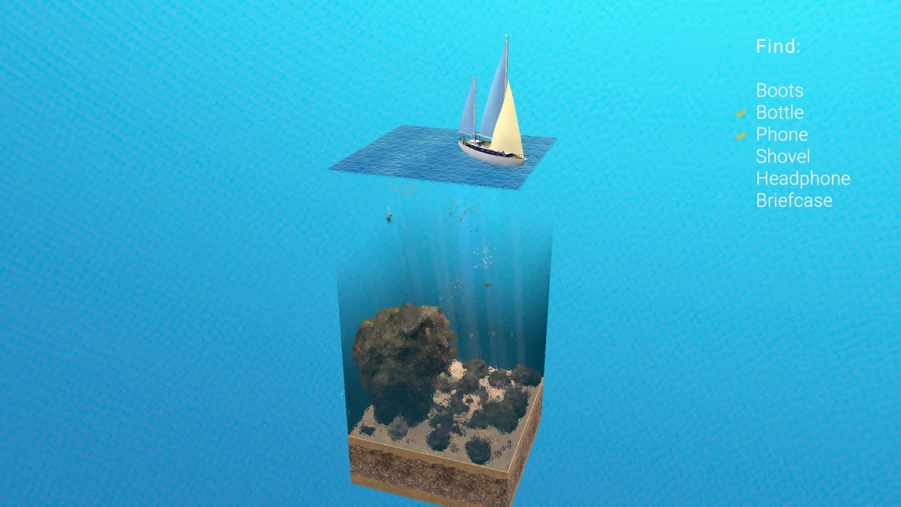 Медитативный опыт Relax It's Aqua позволяет исследовать морское дно на предмет различных интересностей. У героя есть список объектов, которые ему необходимо найти. Они разбросаны по всей территории и тщательно спрятаны. Погружаясь под воду, требуется тщательно обыскивать морские пучины. Найдя нужный объект, герой-дайвер его вычеркивает.