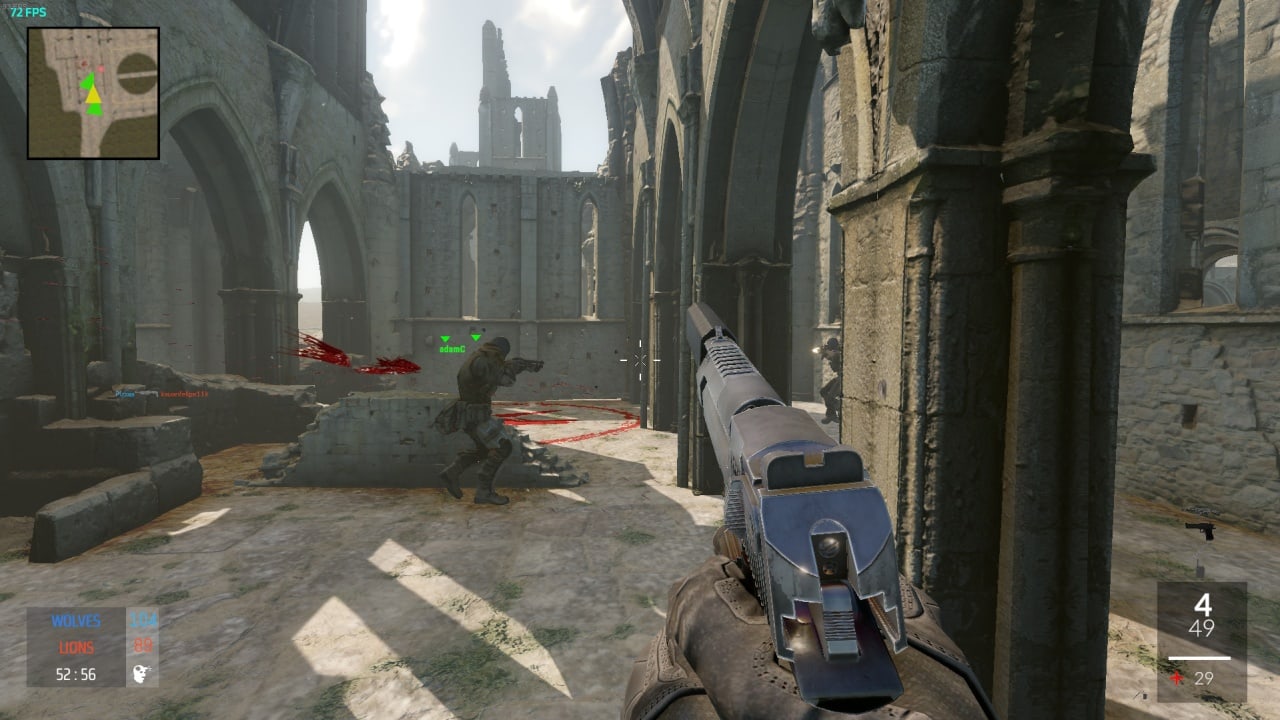 Играть можно как в одиночку, так и подключиться к многопользовательскому режиму. Побеждая в соревнованиях, игроки получают звания и повышают ранг. Всего в NECROSIS : RECONFIGURATED представлено 150 рангов, выдающиеся за те или иные достижения. Повышая свой скилл, открываются новые виды пушек, инструментов, приспособлений или становятся доступными уникальные скины героев.