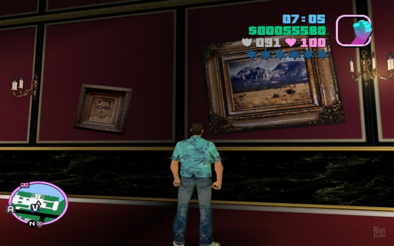 Оригинальная сборка на английском языке дает возможность установить widescreen-фикс для всех современных широкоформатных мониторов. Если в Вайс Сити не работает мышь, то на оригинальную лицензию можно установить фикс для мыши под Виндовс 7, 8 и 10. Универсальность заводской сборки состоит в том, что пользователю нет необходимости искать, где скачать игру или оригинальные файлы, если произошел конфликт модификаций, фиксов, плагинов и библиотек. Для этой версии существует глобальный silentpatсh, исправляющий множество багов и делающий геймплей комфортнее. Также на оригинал можно инсталлировать ограничитель FPS и наслаждаться плавностью картинки на стабильных 60-ти кадрах. Несколько оказуалить классические приключения Томми Версетти можно при помощи скрипта на сохранения в любом месте, и модов на плавание и лазание, с которыми протагонист перестает бояться воды (тонуть и, как следствие, гибнуть), а также получает возможность взбираться на стены.