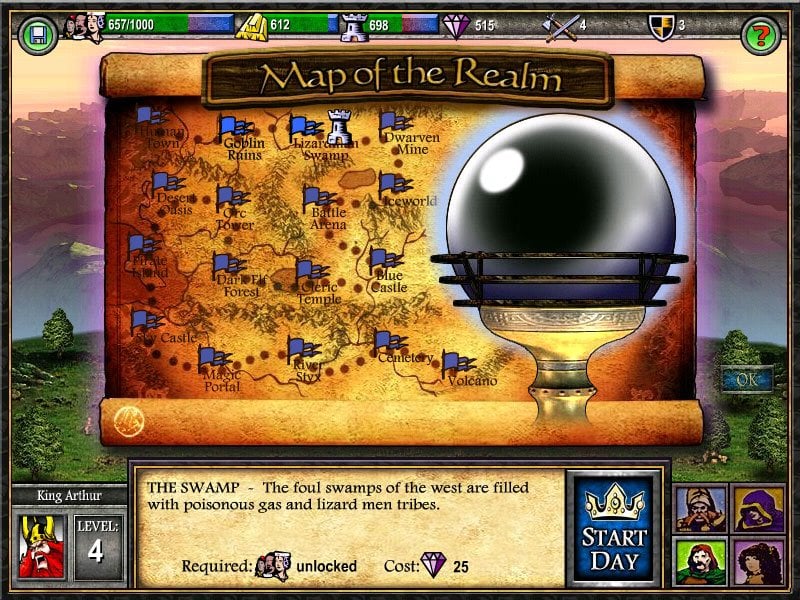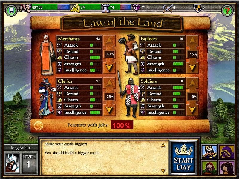 Восстановить равновесие в мире может лишь новый правитель, роль которого достается игрокам. На выбор доступно 5 лидеров. Каждый персонаж в Age of Castles имеет как свои сильные, так и слабые стороны. Выбирайте лидера и отправляйтесь на поле боя. Положите конец многолетней войне! Героям можно назначать 4 уникальные профессии, дающие определенные бонусы и навыки. Королевство состоит из 17 локаций. Каждая область населена самыми разными врагами. Задача заключается в том, чтобы выжать из территорий потусторонние войска. Посетите Магазин старого волшебника, чтобы купить различные магические предметы, способные помочь в бою.