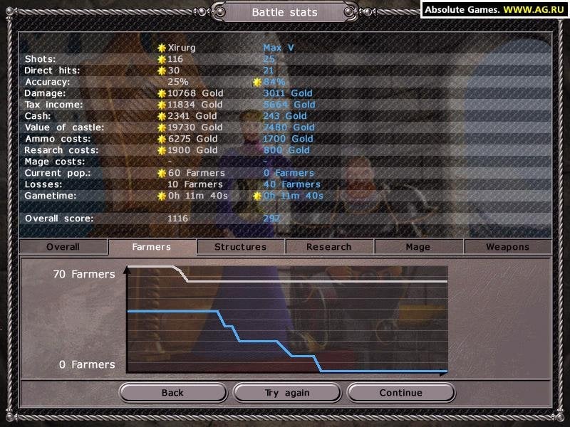Ballerburg - стратегия в реальном времени, погружающая в атмосферу средневековья. Два королевства делят территории после смерти короля. На протяжении 4 кампаний предстоит заниматься военным делом и строительством. Стройте дома крестьян, мельницы, кузницы, фабрики, башни магов и т.д. Без сильной экономики не построить могущественную армию. Перераспределяйте денежные ресурсы, обкладывайте территории налогами и многое другое.