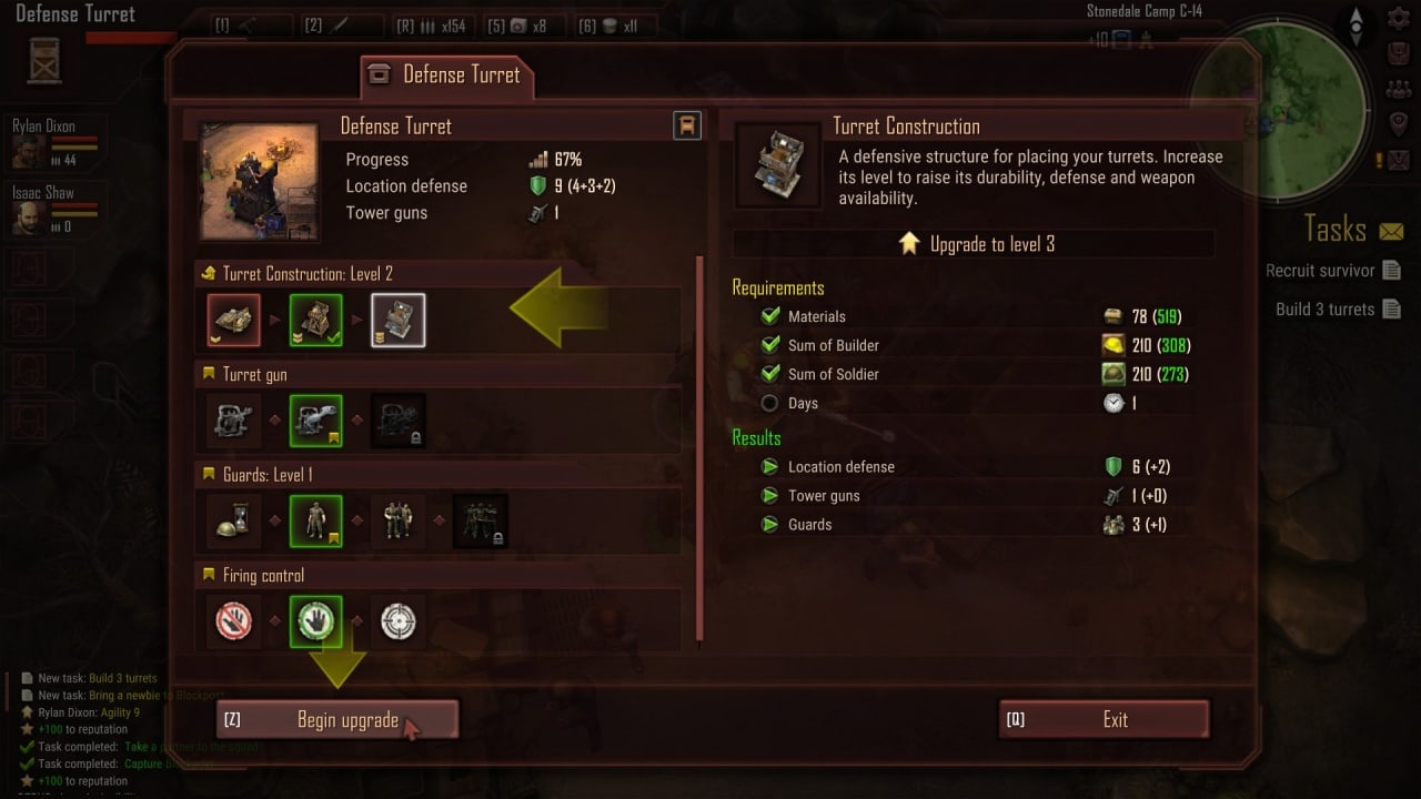 Пользователь возьмет управление над отрядом выживших, которым понадобится изучать большую локацию, находить других людей и постепенно отстраивать общество. На пути они столкнутся с зомби, мутантами и грозными боссами. Представлены многочисленные стратегические возможности, предлагающие строительство базы, размещение войск по разным областям, добыча ресурсов и применение отличающегося вооружения. Захватывая поселения людей, геймер найдет новые материалы и предметы. Каждую ночь количество врагов увеличивается в разы, а также они начинают нападать на людские базы и убежища.