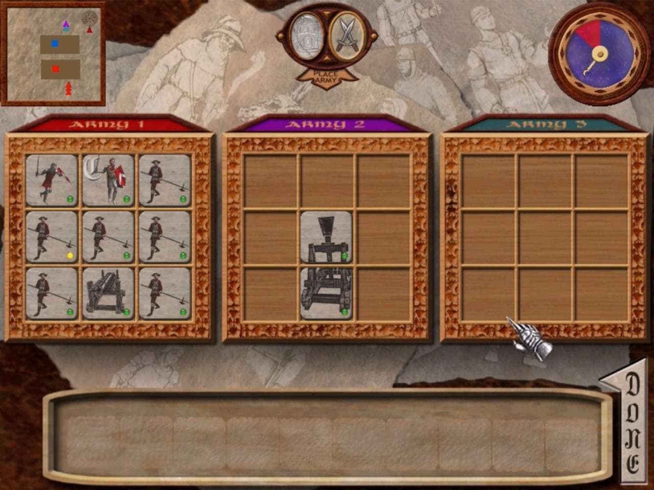 Castles and Catapults - стратегия в реальном времени, помещающая в фэнтезийный мир разрухи и хаоса. Создавайте собственную армию, используя специальные карточки, на которых изображены типы юнитов, постройки, ресурсы и многое другое. На карточках также имеется ее цена. Шесть карт всегда открыты, а остальные находятся в колоде. Открываются они постепенно и когда все покупки будут совершены, игра переносит на следующий экран, где следует распределить армию по трем различным отрядам.