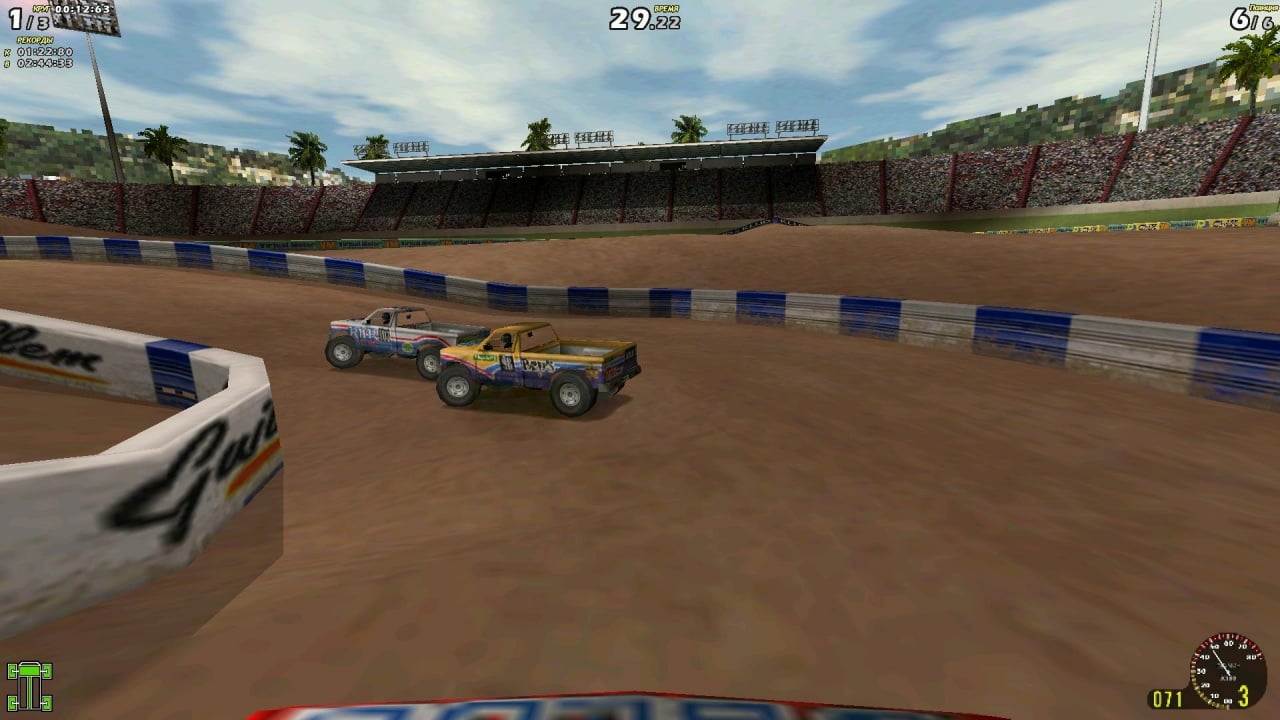 В начале игры позволяется выбрать машину, после чего отправиться на разнообразные стадионы нарезать круги. Автопарк состоит из десяти уникальных машин. Подбирайте транспорт исходя их его внешнего вида и характеристик, среди которых вес, гибкость управления, максимальная скорость и трансмиссия. Трассы в Off-Road Arena представляют собой интерактивные карты, выделяющиеся максимальной проработкой окружения.