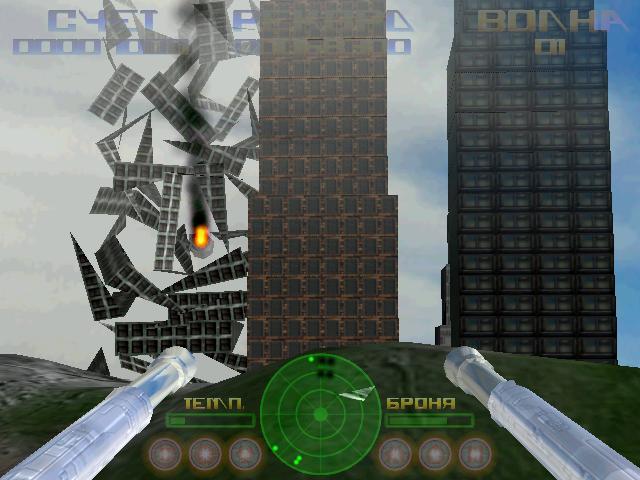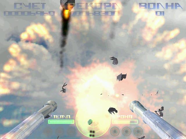 Защищайте города, пустыни, горы, прерии и другие земные достояния, не дав пришельцам захватить ваш дом. Наблюдайте за зрелищной метеоритной бомбардировкой. Уничтожая врагов, получайте бонусы, увеличивающие защитную броню или повышающие скорострельность орудия. Игровой процесс максимально простой и интуитивный. Управление осуществляется при помощи нескольких кнопок, что позволяет даже новичкам быстро вникнуть в суть происходящего.
