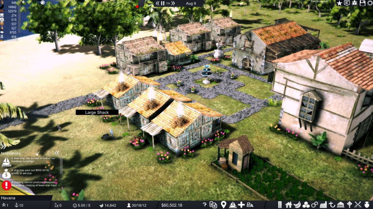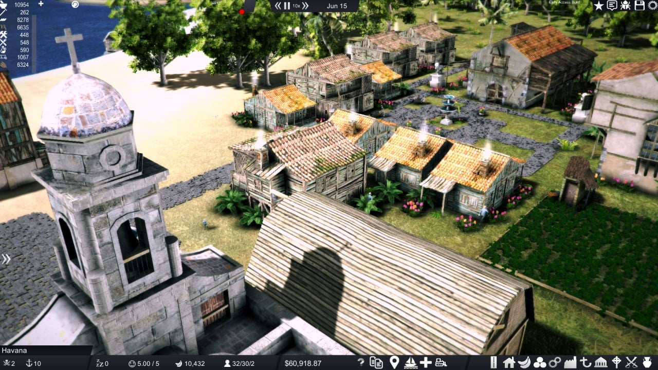 Действия разворачиваются на Карибах, когда европейцы только ступили на неизведанные земли. Геймплей состоит из микроменеджмента, строительства, экономического и торгового аспектов. В начале игры доступно несколько поселенцев и амбар с припасами. С такими первоначальными ресурсами вам необходимо найти способ расширяться и процветать. Построив порт, станет доступен параметр "Репутация порта". Он будет определять, как часто торговые корабли будут готовы пришвартоваться у ваших земель и совершать с вами какие-либо выгодные сделки. Также доступен параметр "Пиратская угроза". В любой момент могут нагрянуть корсары и обчистить склады и амбары.