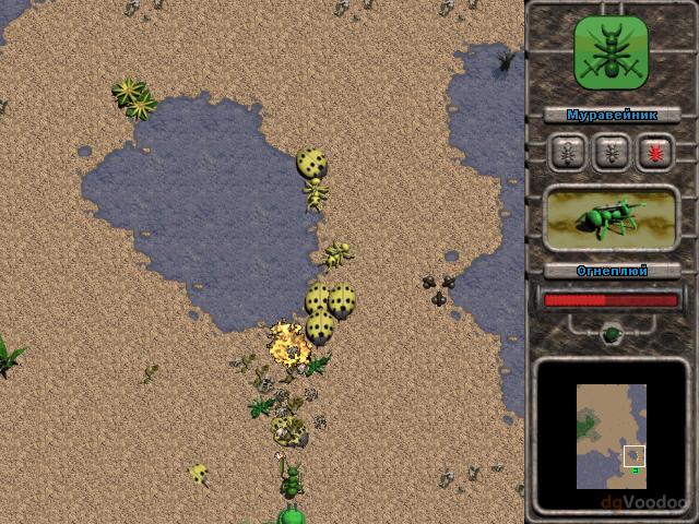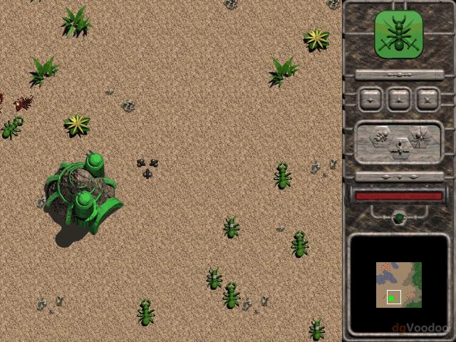 Геймер пользуется единственным ресурсом – временем. Постепенно прибавляется больше воинов к основной армии. Каждая сторона может получить подкрепление из насекомых, если захватывать вражеские базы. В кампании подставлено 100 уровней с открывающимися механиками и обучающими программами. Редактор уровней помогает создавать собственные сценарии и территории.