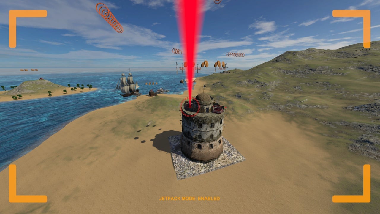 Проект перемещает игроков в местность военных действий, где предстоит перемещаться на реактивном ранце. Подопечный вооружен лазером и технологией быстрого перемещения с бесконечной работоспособностью. Задача геймера проста, ему потребуется пролететь через 4 оригинальных уровня и устранить все вражеские цели на местности. В основном на локации находятся турели, стреляющие по летающему протагонисту.