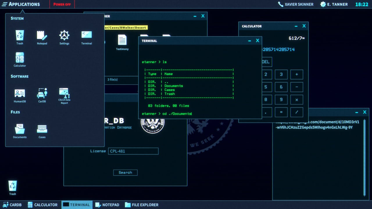 The Operator - это не типичная стрелялка или приключение с нажатием кнопок. Здесь вы меняете пистолет на значок детектива и внимательный взгляд на детали. Пристегните ремни, потому что вам предстоит стать мозгом операции, помогая агентам на местах раскрывать действительно запутанные дела. Подумайте о CSI и лабиринтных головоломках. Вы будете изучать дела, каждое из которых представляет собой запутанную паутину тайн, требующих разгадки. Забудьте о модных гаджетах и физических противостояниях. Ваше главное оружие? Специализированное программное обеспечение, предназначенное для криминалистического расследования данных (FDI).
