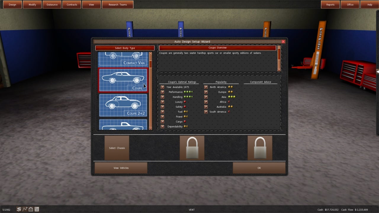 GearCity – хардкорный экономический симулятор ведения бизнеса и управления автомобильной компанией. Симулятор имеет мощную историческую базу и пытается преподнести пользователям важную информацию – как именно стать лидером в бизнесе. Геймплейная механика предлагает с нуля построить процветающую компанию: управлять производством, регулировать поставки товаров и компонентов, модифицировать техническое оборудование и устанавливать цены.