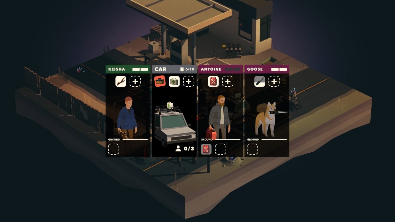 Путешествие проходит по самым разным местам - от лугов и пустынь до горных массивов и откровенно необычных местностей. Дорожная карта, события и персонажи генерируются случайным образом, что положительно сказывается на реиграбельности. Для выживания нужно использовать любые подручные средства. Аптечки, щиты, топоры, самодельная броня, верхние багажники и даже горшки с цветами - пригодится всё.