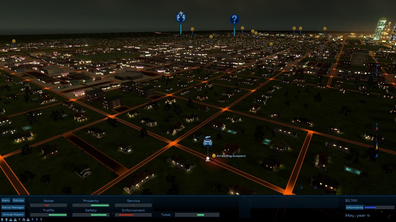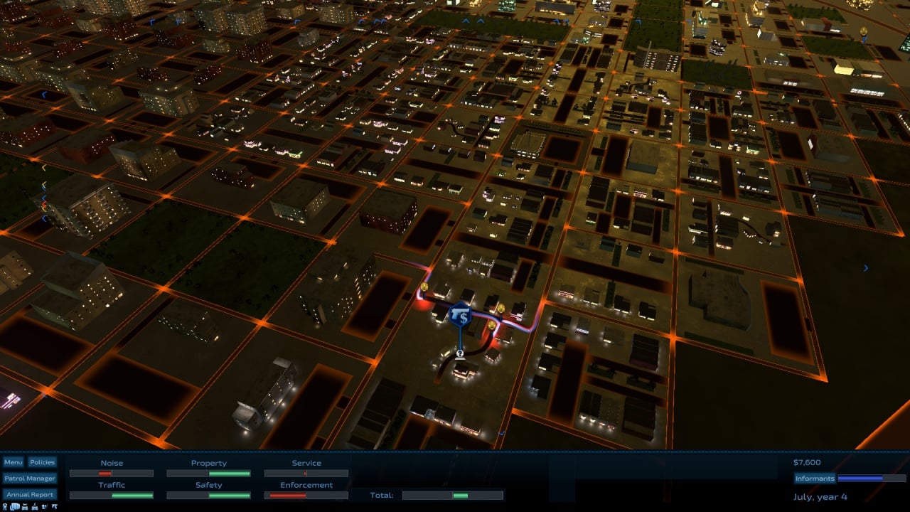 Отправляя подопечных на место преступления. Следите за тем, как они выполняют свои обязанности. Следуют ли правилам или действуют своевольно? Получите доступ к новым перкам и инструментам, повышающим эффективность борьбы с преступностью. Участвуя в погонях, бросайте шипы на дорогу, внедряйте агентов под прикрытием, чтобы выходить на след преступника, при помощи вертолета наблюдайте за событиями на земле и т.д.