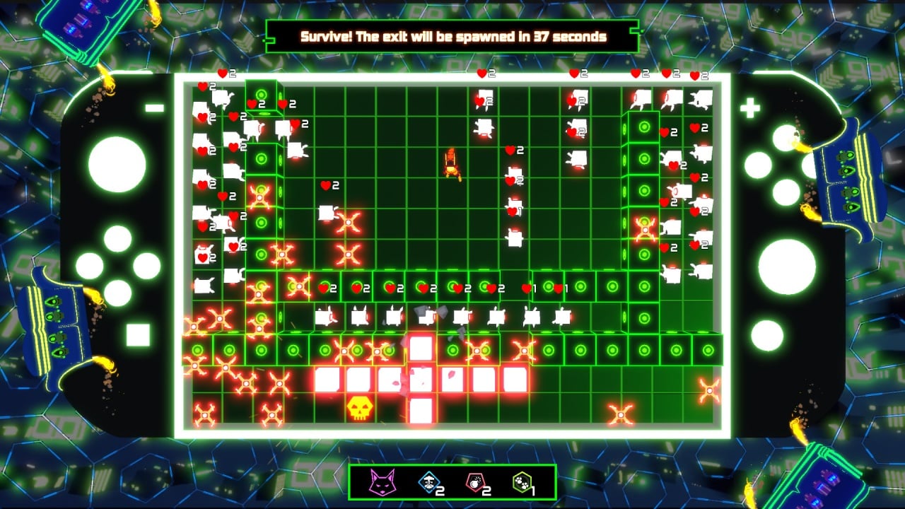 Для поединков доступны 20 арен. Геймплей разнообразный, благодаря чему игра не покажется монотонной. Для нападения используются лазерные бомбы. Часть блоков может взорваться не сразу или вызвать цепную реакцию. Некоторые элементы разрушить нельзя, но можно при помощи взрыва их переместить в другое место. На выбор предлагается несколько типов андроидов. Они отличаются уровнем здоровья и умениями. Например, некоторые способны облетать блоки, а другие способны создавать новых киборгов.