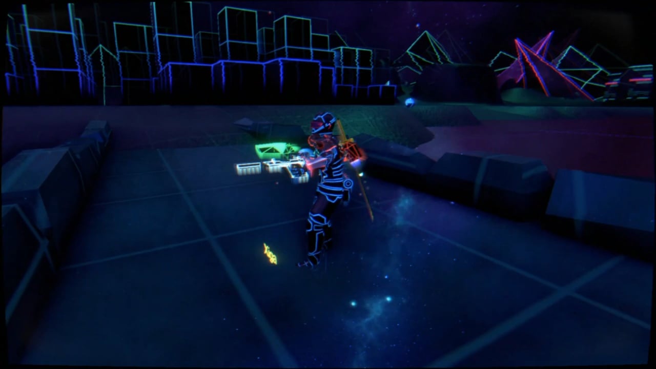 Костюмы оснащены специальными щитами, однако они ломаются после нескольких попаданий. Кастомизируйте персонажа, выбирая костюм и различны аксессуары. Присутствует камера дрона, помогающая охватывать взглядом все поле. Используйте пистолеты, винтовки, лазеры, рикошетные стволы и различные гаджеты, включая крюки, изменение гравитации, инструменты телепортации, надес и т.д. Доступен меч Ниндзято. В ближнем бою герой имеет 2 типа атак: низкую и высокую. Карты очень разнообразны: Тайё, Куб, Монолит и т.д. Режимы игры включают в себя такие состязания, как Лава, Препятствие, Захват Данных, Многопроходная система и т.д.