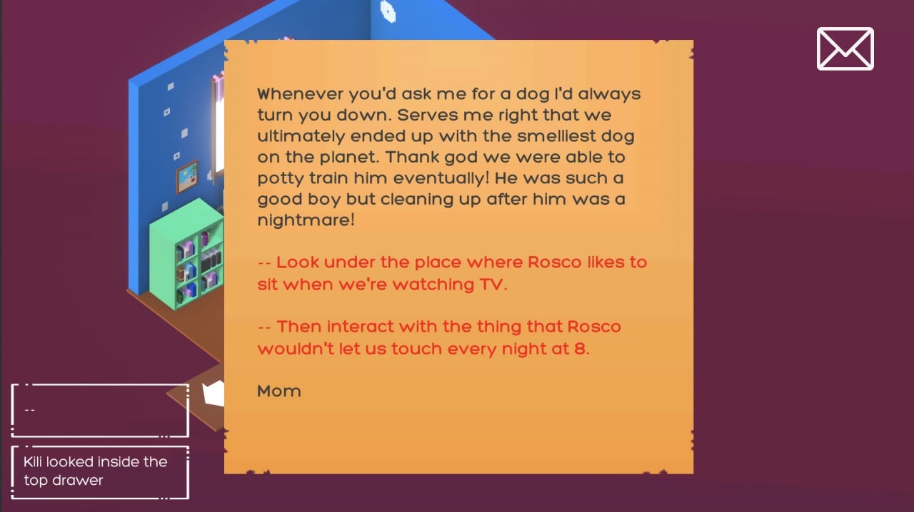 Собирая информацию по частям, героиня будет выяснять, к чему относятся мамины руководства. После использования доступных подсказок откроются следующие и так до момента, пока все сокровища не будут найдены. Загадки не очень сложные, но трудности могут возникнуть с увеличением открывшихся элементов, так как нужно будет не запутаться. В таком случае инструкции помогут сузить круг поиска, потому что описанные там действия будут похожими для каждого нужного предмета. Управление в игре несложное, присутствует быстрое перемещение между локациями, что поможет сэкономить время. В настройках можно изменить параметры громкости, разрешения экрана и выбрать оконный или полноэкранный режим. Красочная графика и приятная плавная музыка, которая иногда затихает, подарят хорошие впечатления от прохождения.
