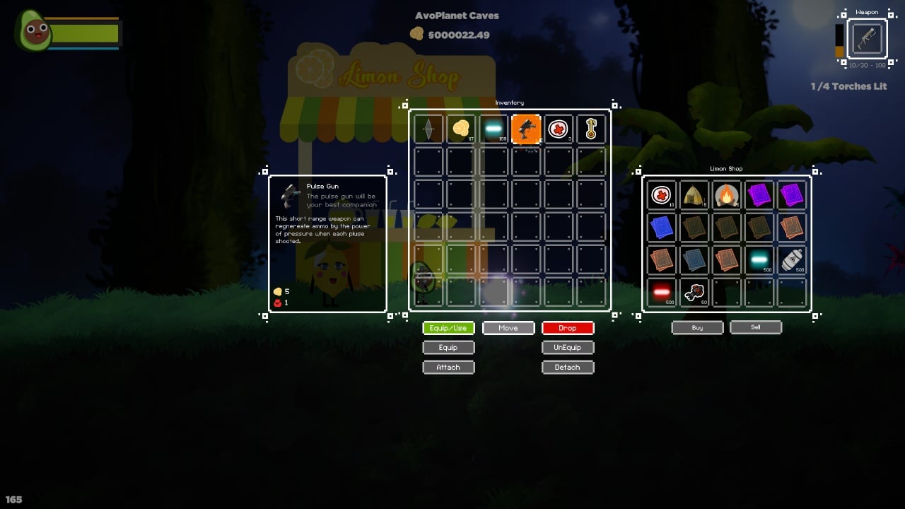 На выбор доступно 7 видов вооружения, среди которых импульсные стволы, самонаводящиеся ракеты и оружие ближнего боя. Из врагов выпадают лимонные монеты, на которые покупаются апгрейды. По пути решайте несложные пазлы и постарайтесь преодолеть все трудности, которые подкидывает игра.