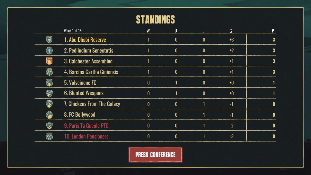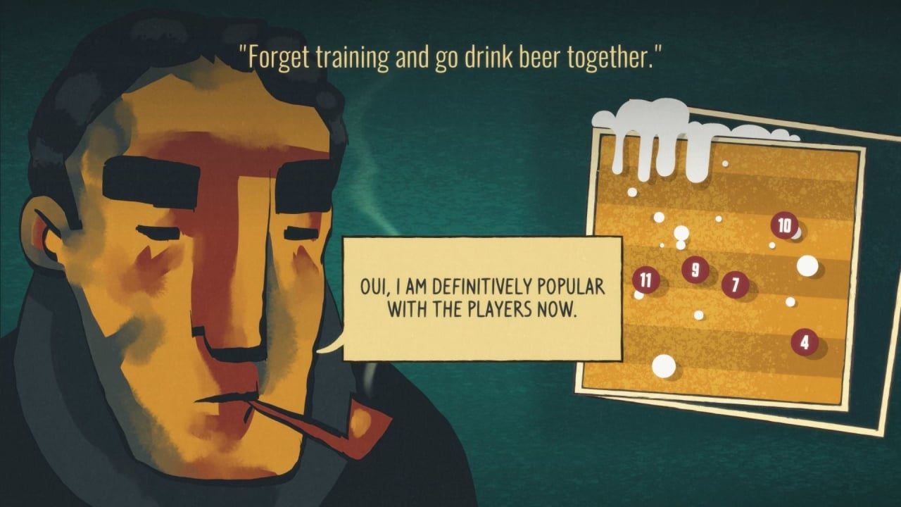 Главному персонажу нужно продержаться 18 недель в сезоне. Добиться цели будет непросто из-за риска вылететь с занимаемой должности в любой момент. Этому будут способствовать коррупция, наркотики, преступность, темное прошлое протагониста и другие факторы. Игра делится на 2 фазы. В первой нужно читать диалоги, определяться с репликами и действиями. Есть система карточек, позволяющая совершать жизненные выборы. Всё это влияет на дальнейшее развитие событий. Во второй нам предлагают управлять футболистами в пошаговом режиме. На поле периодически возникают разные ситуации. Надо часто выбирать между двумя опциями – риском и контролем. Попытка рисковать может обернуться провалом с определенным процентом вероятности, а желание оставить всё как есть позволяет поддерживать ситуацию в текущем состоянии.