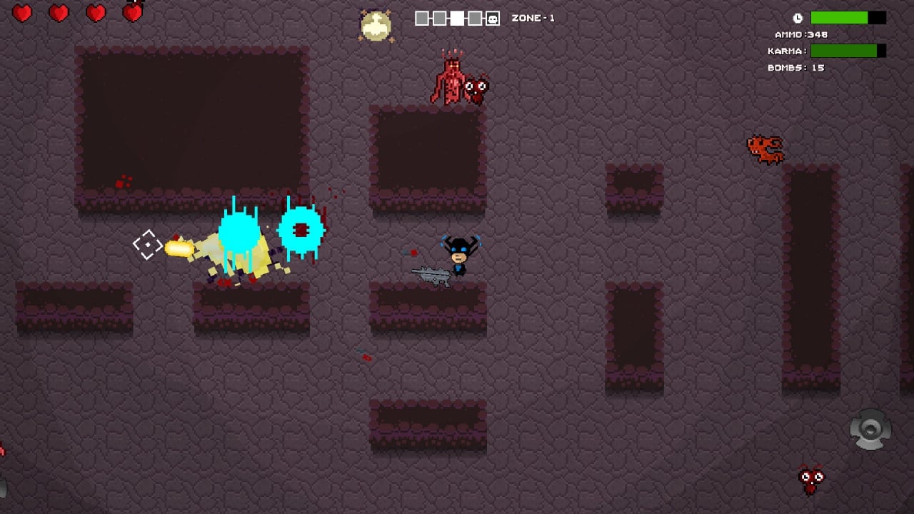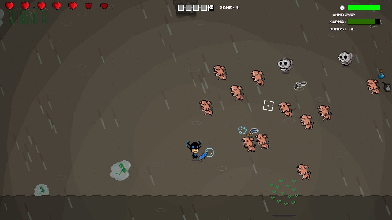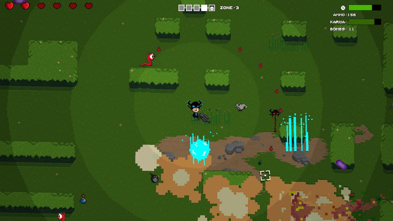 Расстрел врагов из смертельного оружия здесь не приветствуется. Лучше попробовать изловчиться пройти начиненные агрессивными формами жизни локации, применяя преимущественно второй тип пушки на вражьей тушке – пузырестрел, не причиняющий нападающим никакого вреда, зато повышающий скорость и внутренний свет протагониста. Чем сильнее дух носителя короны, тем ярче его аура. Впрочем, оптимальную тактику геймплея игрок подбирает сам. Отстрел живности и спортивные забеги рекомендуется чередовать в зависимости от окружения и ситуации. Боссов, кстати, тоже никто не отменял. Игра поддерживает все типы контроллера и порадует наличием таблицы достижений.