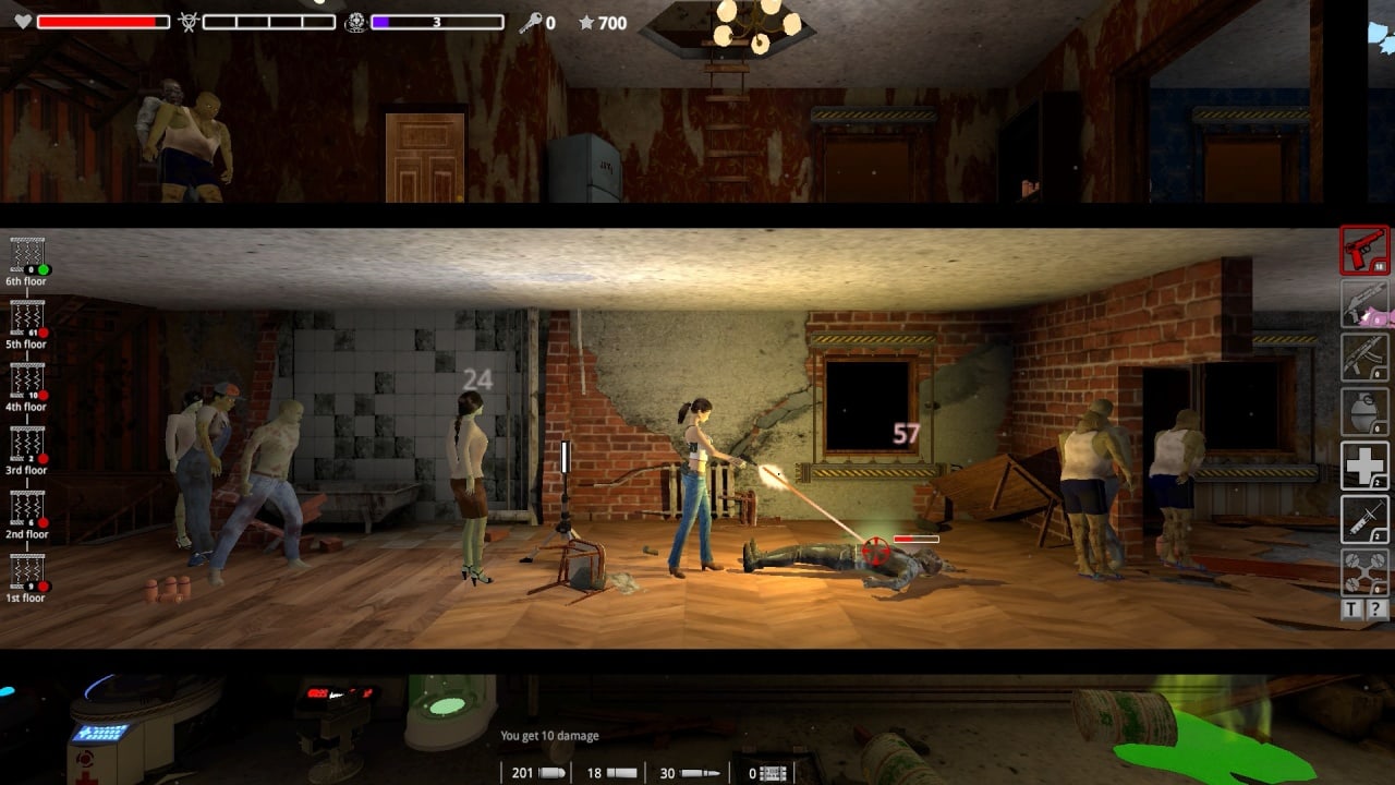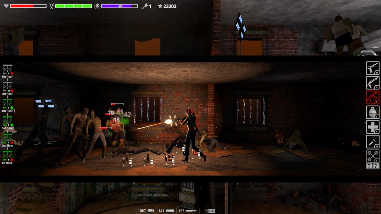 Многочисленная мелочь тоже способна доставить проблем. На самом деле, именно она на трехъярусных уровнях Z-Blood Mission представляет основное топливо для разжигания пятой точки игрока. Дело в том, что рядовой зомби, легко опрокидывающийся ударом ноги, падающий от выстрела в упор или снайперской пули пойманной с другого конца коридора, как правило, лежит ничком не долго. Эти болванчики, как неваляшки, немного отдохнув носом в пол, норовят снова подняться и страстно укусить девчонку-командоса. Иногда они собираются в группы по полсотни особей, и персонажу приходится изобретать велосипед, чтобы вывернуться из их объятий. Для таких ситуаций в игре проработана система крафта оружия, доступны разные виды огнестрела, гранат и полезного лута.