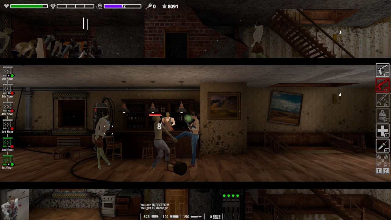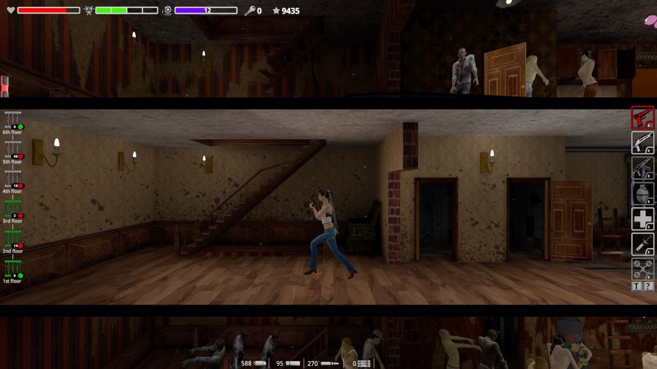 Z-Blood Mission - это альманах выживания в условиях Z апокалипсиса. Основной фокус сосредоточен на ликвидации толп бродячих мертвецов, непонятно как оккупировавших целое здание. Они болтаются по лестницам, коридорам и комнатам, как положено классическим зомби, вытянув вперед безжизненно висящие ладошки и ждут... Пулю в пузо! Обычно туда навскидку целится главная героиня. Живая, бойкая девушка в этом рассаднике тлена однозначно смотрится свежо: словно только что сбегала домой, переоделась в чистое, стащила у психически неуравновешенного родственника пистолет и вернулась, чтобы весело пострелять. Весь геймплей завязан на перебежках между этажами, напичканными мертвечиной и попадающимися время от времени боссами (здесь это толстые, мускулистые и сильные овощи, которых достаточно трудно упокоить с миром).