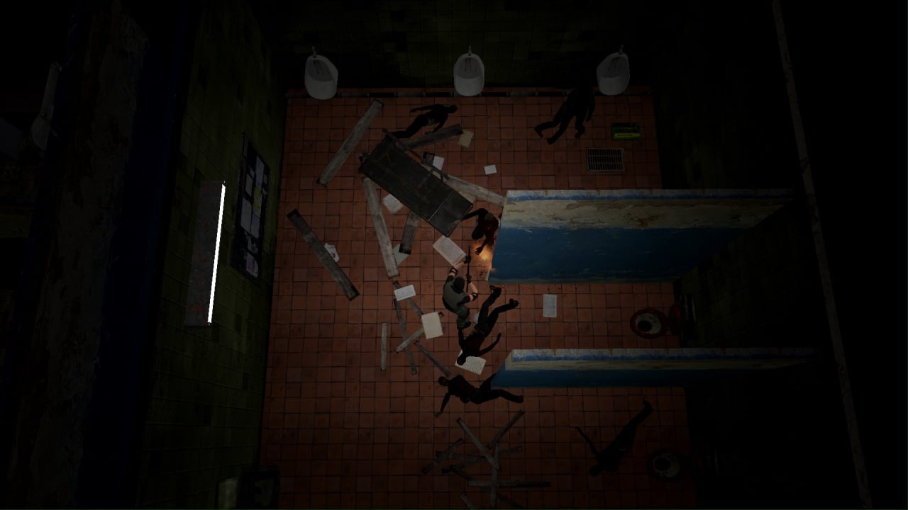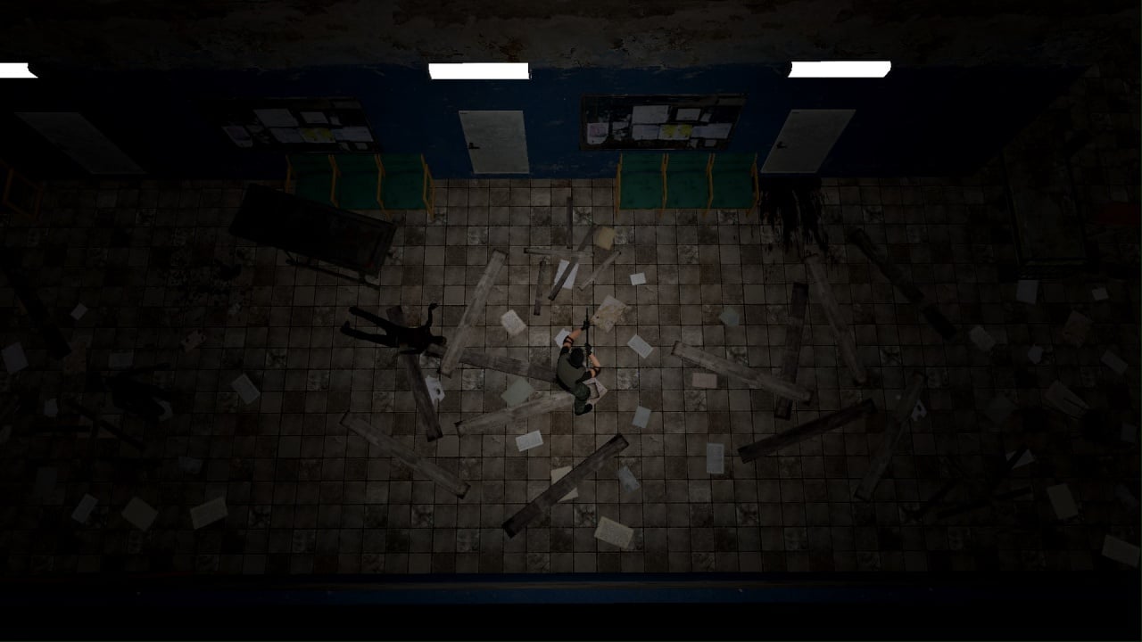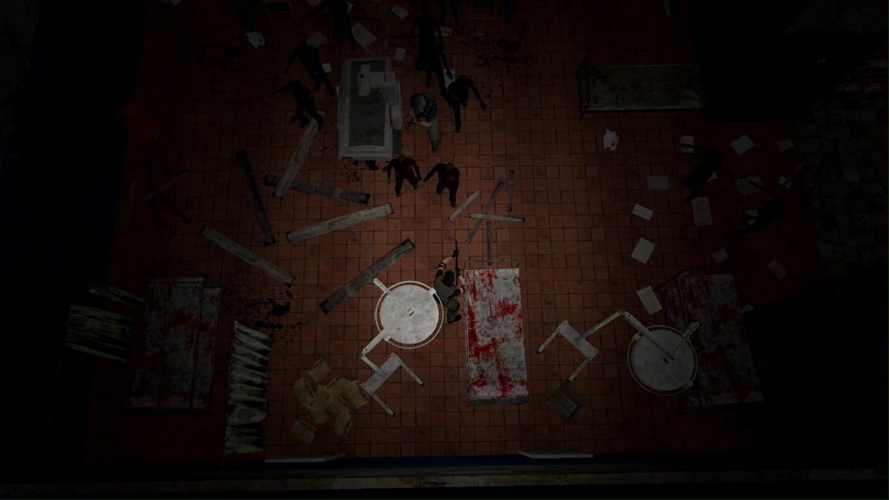 У стрелка имеется 100 единиц здоровья и 3 жизни. Когда HP оказывается на нуле, он теряет одно продолжение и воскресает на ближайшей контрольной точке. Враги представлены зомби и охранниками. Ожившие мертвецы атакуют в ближнем бою, а люди стреляют из автоматов. Пользоваться оружием убитых противников нельзя. Есть радар, что позволяет понять, сколько недругов находится в соседних комнатах.