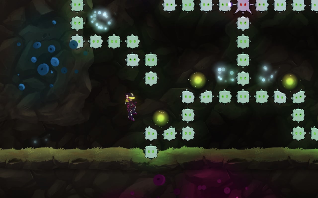 Главную героиню зовут Стелла Страйкер, она является пилотом космического корабля, и собирает редкие материалы на далеких планетах. Правда, в игре она всегда передвигается пешком, но довольно быстро. Протагонистка всегда находится в движении, игроку остаётся лишь правильно подобрать момент момент для прыжка. На всех уровнях разбросаны некие инопланетные сгустки энергии, меняющие направления бега. С их помощью реализованы все головоломки и задания. Игроку нужно либо найти способ до них добраться, либо придумать, как избежать столкновения. В этом могут помочь другие элементы окружения, которые увеличивают скорость или высоту прыжка. После первого прохождения откроется возможность самостоятельно делать рывок, в игре появится дополнительная кнопка контроля.