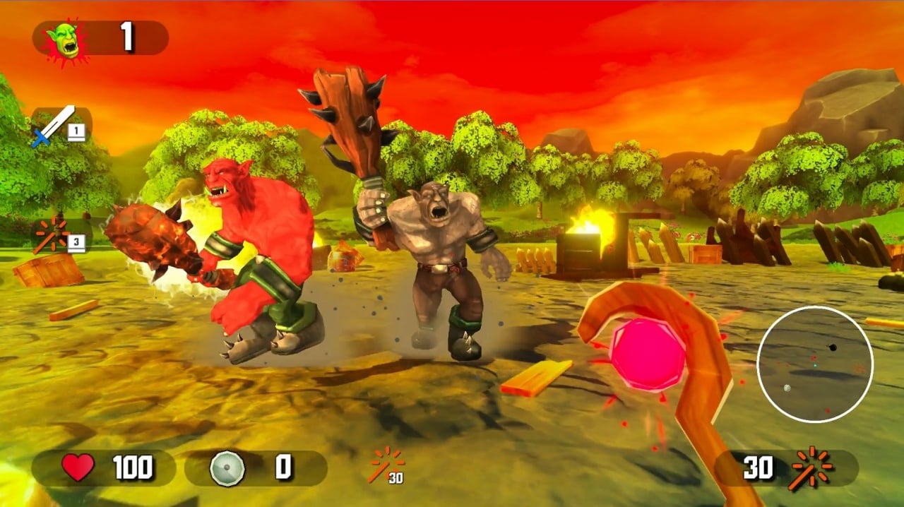 Цель Orc Raid – бегать по красочным локациям и сражаться с толпами орков. Сюжет этого шутера от первого лица поделен на 9 глав, где меняется уровень сложности. На каждой миссии задается количество противников, которых нужно убить, чтобы продвинуться дальше. Сражаться с врагами главный герой будет при помощи рандомно сгенерированного оружия, разбросанного по территории. Это может быть и магический посох, и смертельные бомбы. Орки, пострадавшие от взрыва или удара мечом, эффектно разлетаются на части, разбрызгивая кровь в разные стороны. Если погибнуть во время прохождения, то раунд придется переигрывать заново. Присутствуют сложные отрезки, где герою дается рыцарь-помощник. Даже если он умрет, то на следующем уровне воскреснет и будет помогать снова.