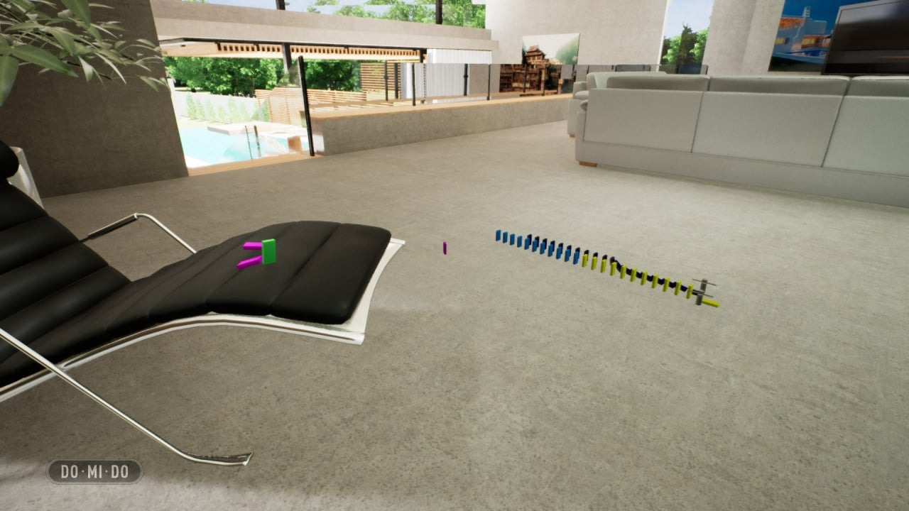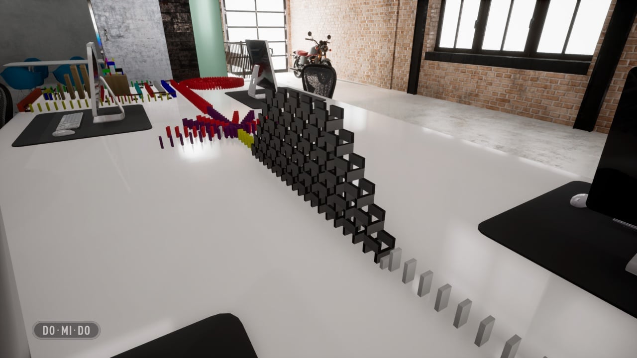 DomiDo — казуальный симулятор расстановки домино. Медитативный и расслабляющий способ провести время, обставляя виртуальный интерьер разноцветными фигурками. Создайте собственные лабиринты или интересные иллюстрации, используя свою смекалку. Сильно устав после трудного, наполненного суетой и проблемами, рабочего дня, просто расслабьтесь и окунитесь в опрокидывание сотни, или даже тысячи, домино.