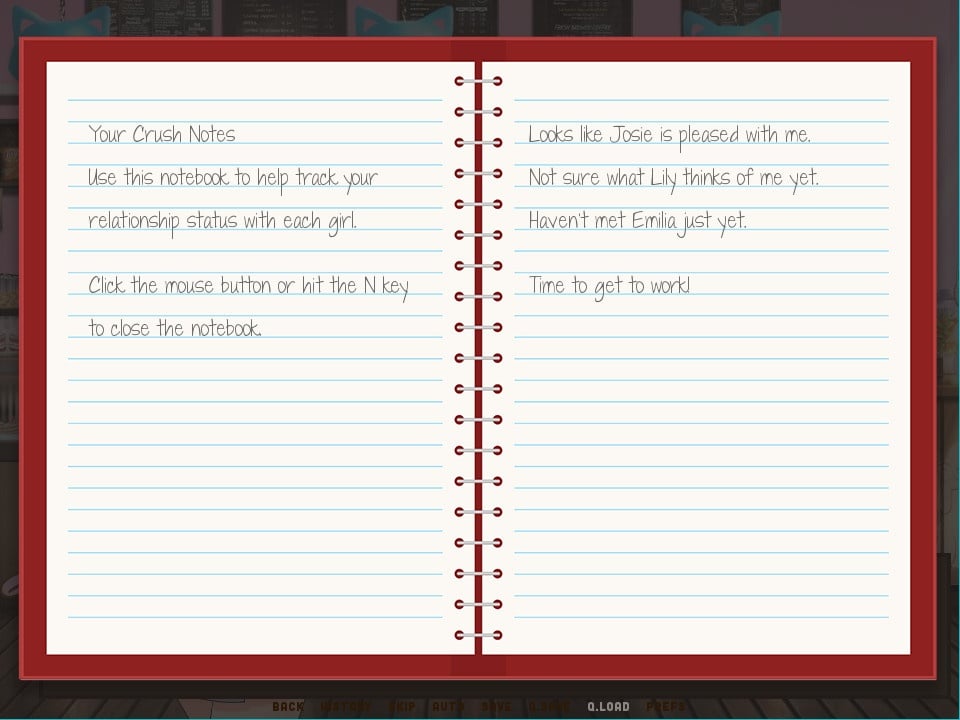 Доступны различные виды миссий от заданий на запоминание до поиска предметов. Также есть викторины и квесты. Благодаря системе баллов Crush Points можно отслеживать прогресс развития отношений с возлюбленной. По мере продвижения по сюжету герой будет узнавать о вещах, которые нравится девушкам и сможет купить идеальный подарок, чтобы удивить ее на свидании.