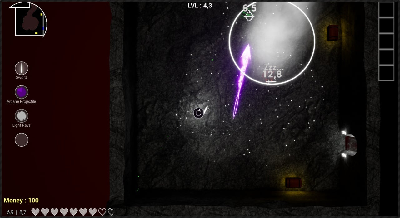 Core Of Darkness - это довольно необычный рогалик с минималистической графикой. Как и во многих подобных играх, в нем нужно исследовать случайно сгенерированные комнаты, истреблять толпы врагов и искать новый лут. Главной особенностью является примитивная визуальная часть, которая позволяет полностью сконцентрироваться на геймплее. Комнаты и большинство декораций - это просто прямые линии, соединенные под разными углами. А главный герой и все враги выглядят как небольшие кружочки с оружием.