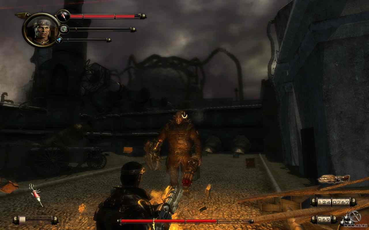 Штраусс на зло всем ставит над собой эксперимент и становится таким же роботизированным механизмом, желающим восстания. Главный персонажем игры Другой мир стал бывший наемник Эван Макрайан, который вооружившись с ног до головы пошел бороться с ошибкой сумасшедшего ученого. Мужчина выглядит как военный, хорошо владеет оружием и знает, чего он хочет. Взяв с собой дробовик и еще некоторые мощные пушки, парень уверенно отправляется на задание, обезглавливая на пути искусственные машины. Выглядят противники не самым лучшим образом, поэтому если вы увидите огромные механизмы с вытекающими наружу мозгами, можно смело выпускать пулю в лоб. Так же каждый из «монстров» отличается друг от друга, кто-то рвется в ближний бой, у кого-то непробивная броня, а кто-то просто желает хорошенько пообедать. Главной задачей для игрока является не только выжить, но и добраться сквозь агрегаты до самого главного и безжалостного босса – Мефистофеля. На каждом уровне появляются телепорты, откуда орки и прибывают на землю. От этого портала нужно избавиться в первую очередь, иначе монстры будут лезть бесконечно и в огромных количествах.