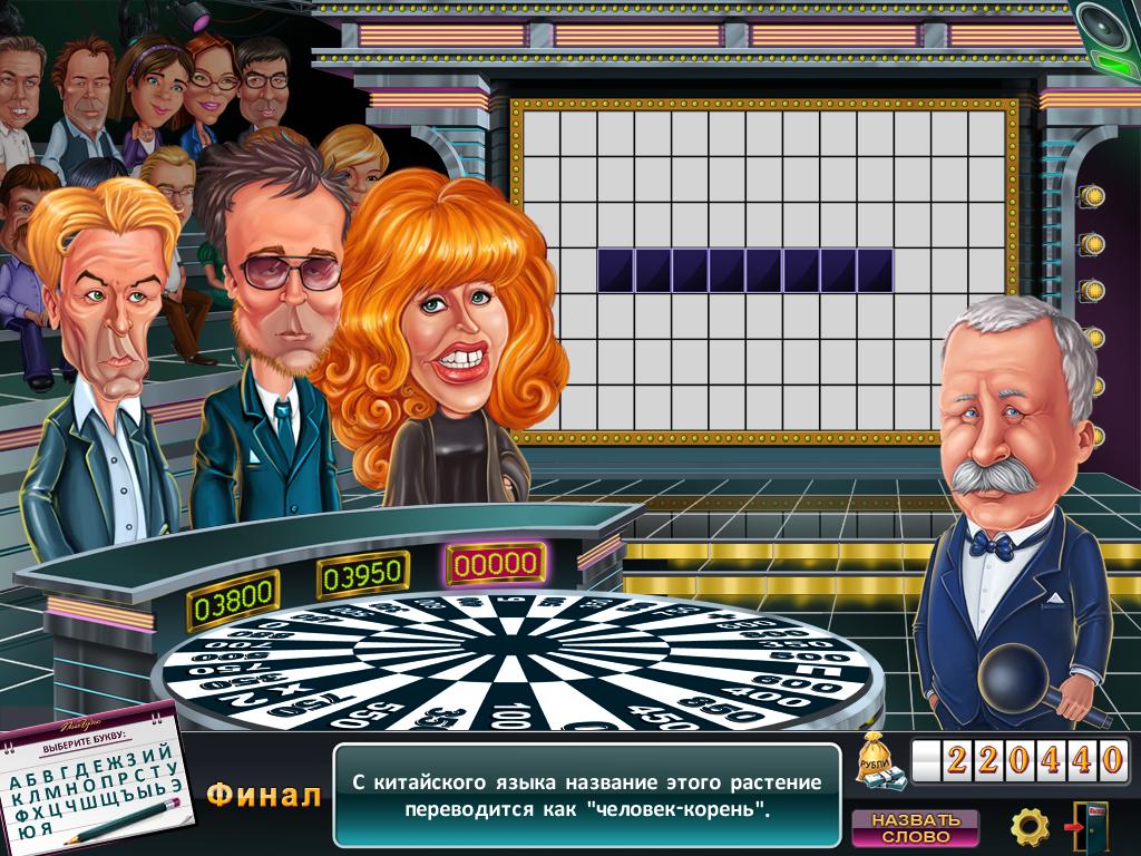 Поле чудес – это логическая игра, сделанная по мотивам одноименной телевикторины. Как и в оригинале, виртуальный аналог передачи ведет Леонид Якубович. Он оставляет энергичные комментарии и часто шутит. Кроме него в проекте можно встретить ещё 20 звезд с российских телеканалов, что были популярны на момент выхода тайтла.