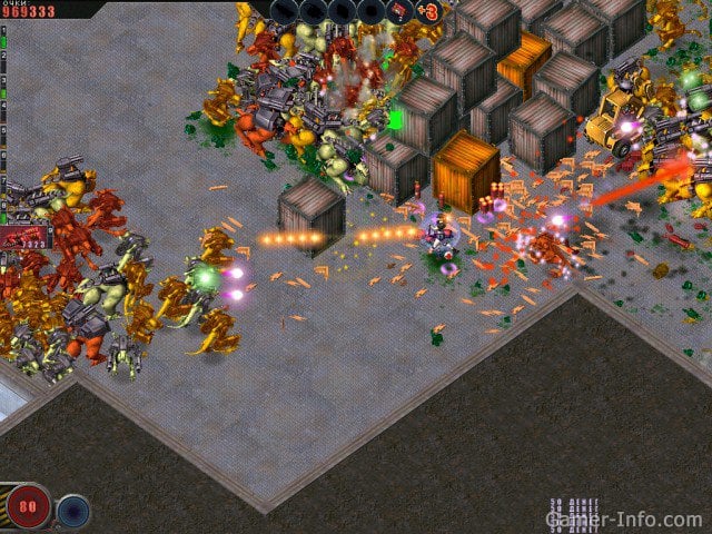 Alien Shooter: Начало вторжения – это изометрический шутер с прокачкой. Благодаря данному проекту появилась целая серия игр про отстрел инопланетных монстров. В оригинале на выбор дается 2 героя. Парень и девушка кроме внешности и пола различаются характеристиками: силой, меткостью, здоровьем и скоростью. Эти параметры можно повысить, если вставить им соответствующие имплантаты.