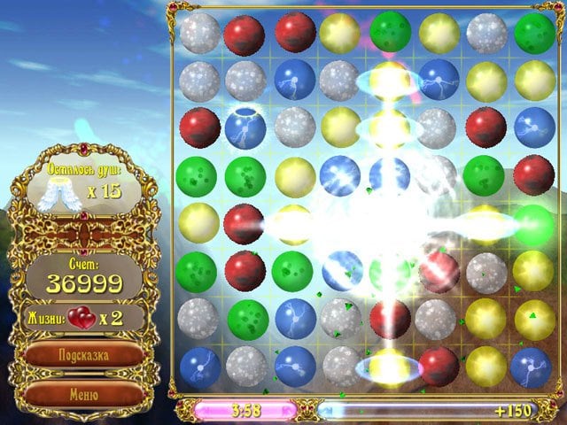 Sky Bubbles относится к логическим аркадам. В этой игре-головоломке надо передвигать шарики одинакового цвета – красного, синего, желтого, серого и т. п. При создании цепочек минимум из 3 фишек они исчезают. После этого на пустующее место сверху падают новые сферы. В каждом шаре, на котором изображен нимб, заключен дух. Он обретет свободу, если уничтожить такой объект.