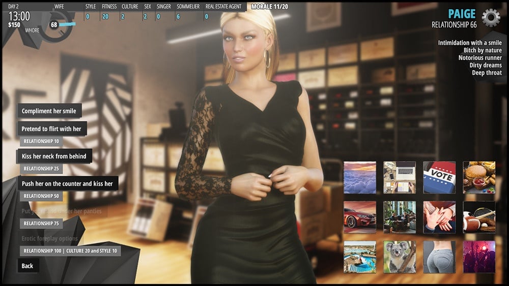 Ваша задача в Eleanor 3 – выполнять действия в соответствии с внутриигровым ежедневным графиком, направляя жизнь на дорогу интересных событий. В третьей части вы столкнетесь с персонажами предыдущих эпизодов и увидите 1000+ статических изображений с 80 анимациями. В данном симуляторе свиданий вы познакомитесь с красивыми девушками, будете с ними общаться и пытаться добиться интимной близости.