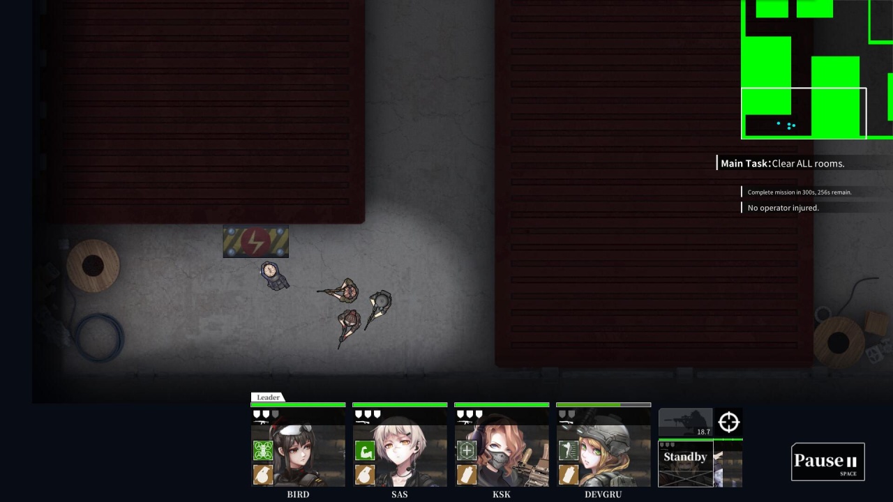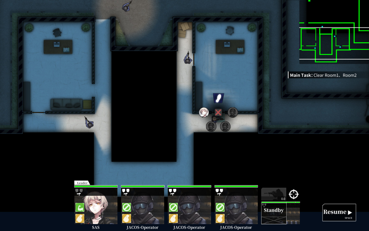 Ключевая механика заключается в том, что для каждого члена группы необходимо создавать отдельный маршрут. Для этого достаточно нарисовать курсором линию, чтобы боец перешел в конечную точку. На первых уровнях это не будет иметь принципиального значения, но далее тактика обретет смысл. Например, при входе в помещение, нужно будет расположить юнитов таким образом, чтобы они прикрывали друг-друга. Чтобы неожиданно ворваться в помещение, можно использовать свето-шумовое устройство, а для устранения группы противников подойдет боевая граната.