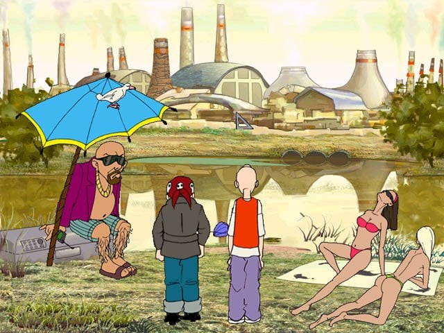 Игра "Вовочка и Петечка" относится к жанру "квест". В юмористической истории нашлось место 40 персонажам. Среди них есть не только преподаватели или ученики, но и бомжи, сутенеры, наперсточники. Управлять нужно обоими героями (и поочередно, и всеми сразу). Для того, чтобы разобраться с тем или иным пазлом, надо не только провести правильное взаимодействие с объектом, но еще и понять, кто из подростков должен совершить конкретное действие и в каком порядке.