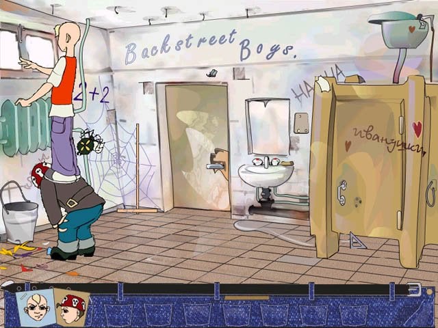 Друзья побывают в кабинете директора и окажутся запертыми в туалете. Они столкнутся с любовью одноклассниц и вступят в конфликт со старшеклассником по кличке Гусь. Также ребята подшутят над учителями и даже разоблачат самого главного человека в школе. Сюжетная кампания состоит из 20 экранов. Каждый из них представляет собой отдельный уровень. Переход в следующую локацию возможен только после решения всех головоломок на текущем этапе.