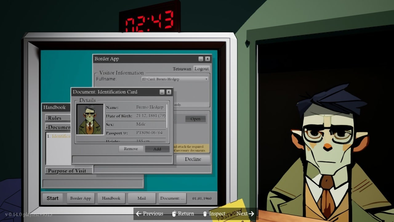 Геймеру предоставляется выбор, кого пропускать, а кого отправить обратно. Имеется возможность отыскивать легальные причины для отказа, но никто не запрещает не впускать по личному желанию. Люди, что приходят в отдел, будут разговаривать с виртуальным протеже, пытаясь выстроить приятный диалог или заговорить зубы для того, чтобы не дать обнаружить ошибку в их документах либо недостачу какой-либо справки. Пользователю нужно самостоятельно решать, закрывать глаза на нарушения из-за трогательных рассказов путешественников, или не поддаваться и следовать инструкциям, чтобы не давать поводов для собственного увольнения с должности, что повлечёт за собой окончание игры.