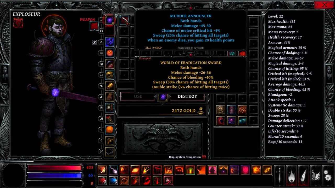 Hellslave относится к жанру Dungeon Crawler. Однако одними катакомбами в нём место действия не ограничивается. В игре можно путешествовать по миру между точками интереса через глобальную карту. Для исследования доступны склепы, деревни, кладбища и прочие локации. Перемещение по ним происходит с видом от первого лица. При столкновении с противником начинается пошаговый бой. Враги представлены зомби, демонами, призраками и десятками иных существ. Среди них попадаются боссы. После завершения основной кампании становится доступной New Game +. В игре есть 2 дерева прокачки с пассивными и активными навыками соответственно. Их можно и нужно комбинировать. Определенные скиллы вступают в синергию между собой. По мере прохождения открывается доступ к новым способностям.