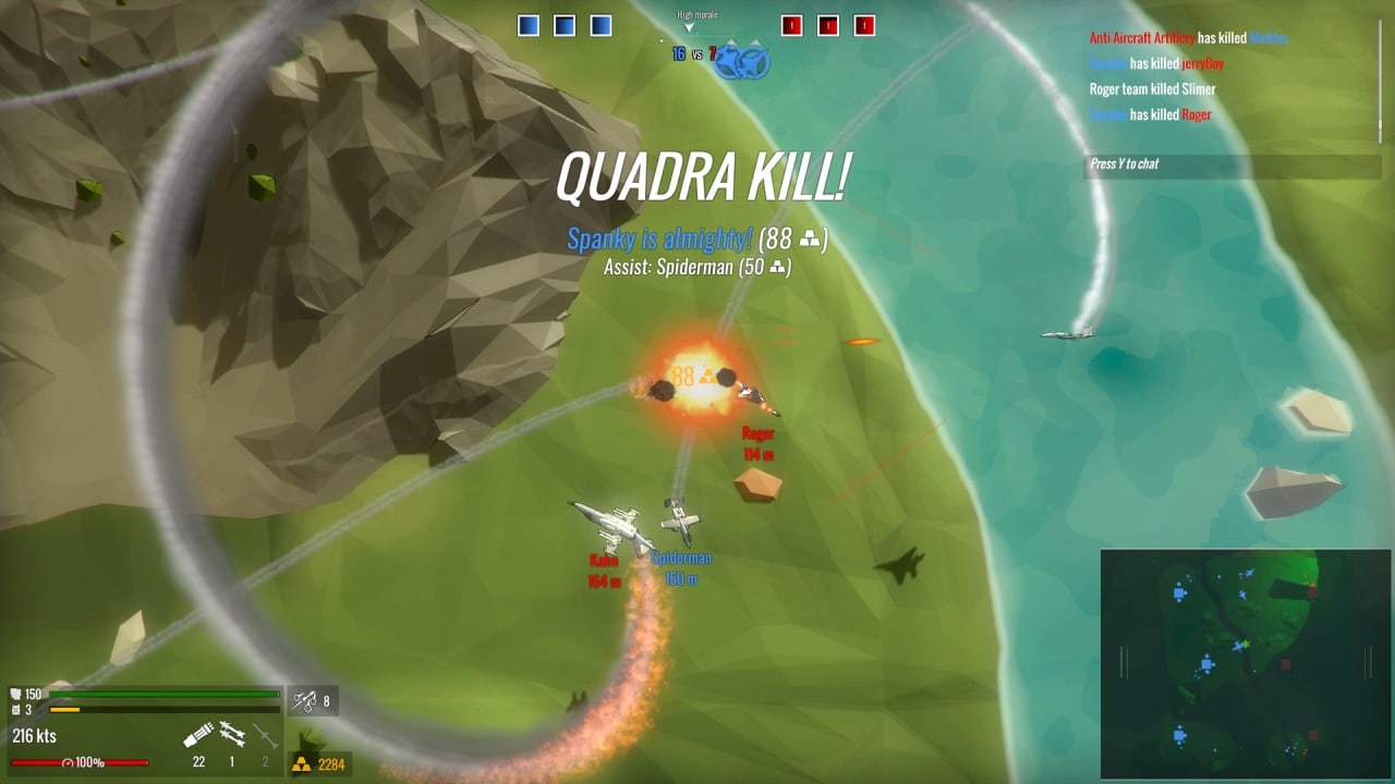 Графически, проект выполнен с использованием низкополигональных моделек объектов окружения и гораздо более детализированных текстур 9 реализованных самолётов для того, чтобы их можно было рассматривать в ангаре, наслаждаясь их внешним видом и инженерной мыслью. Имеется прокачка, что позволяет геймеру зарабатывать опыт на полях битв и тратить его на получения более мощных модулей для своего истребителя. Также, можно приобретать новую боевую единицу из довольно обширного списка. Отличаются они только внешне, а характеристики зависят от улучшений.
