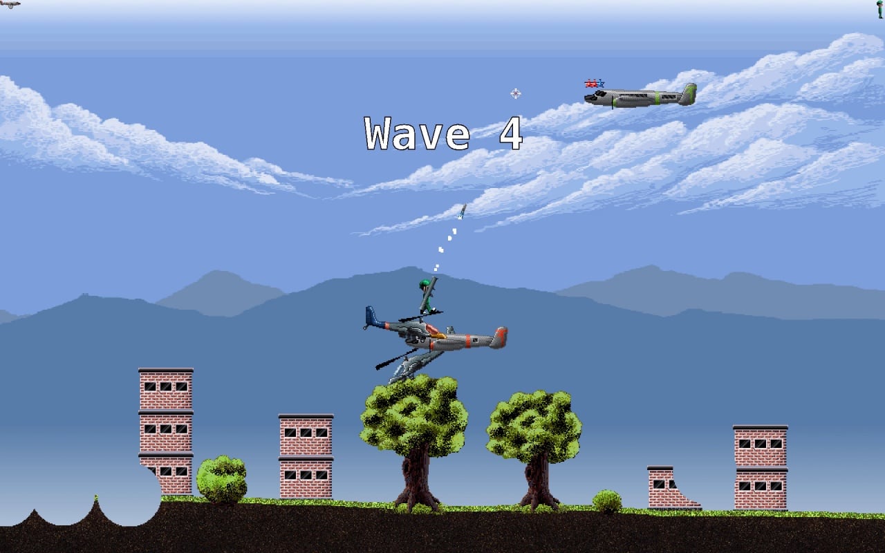 Air Attack - двумерная аркада с элементами выживания, которая позволяет сыграть в серию быстрых матчей. Сделайте пятиминутный перерыв и снимите стресс при помощи насыщенного геймплея ретро-шутера. Вы управляете человечком, сбивая летящие бомбардировщики. Используйте различное оружие, прыгайте по зданиям и копайте туннели, чтобы скрыться от атаки врага. Карты генерируются случайным методом. Можно разрушать любой объект на локации.