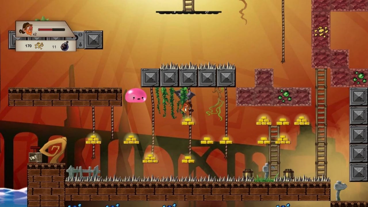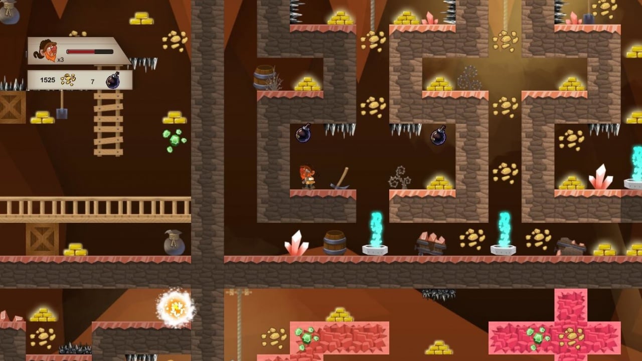 Пройдите через три обширные шахты с десятками уровней, столкнитесь с опасными врагами и препятствиями. На пути повстречаются Охранники шахты (боссы), готовые к сражению. Тут будут летающие и ходячие соперники, а большую часть из них можно уничтожать при помощи взаимодействия с окружением. В земляном, ледяном и глиняном руднике будут оригинальные преграды и этапы. Находите секретные местечки и зелья здоровья. В каждой среде имеются определенные типы опасностей и новые обитатели.