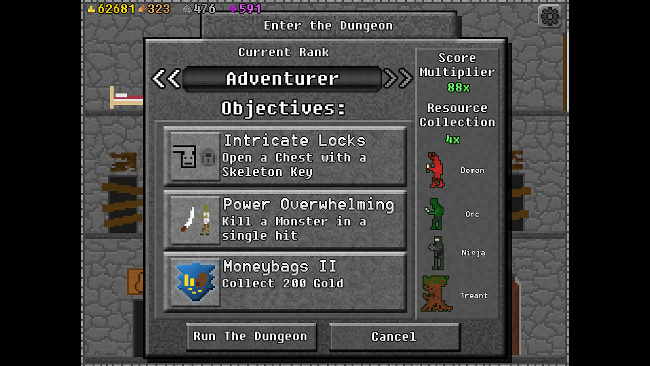 Противников можно и нужно убивать. Для этого необходимо объединять между собой мечи и посохи, тем самым проводя физические и магические атаки. Для повышения силы удара надо построить кузницу, а затем периодически апгрейдить там вооружение. Алхимическая лаборатория позволит пить зелья, что облегчают забеги или делают их труднее. Также можно покупать новые умения для своего протеже, что немного упрощают игровой процесс. Постепенно данжи становятся всё сложнее (заодно и повышается награда). Для продвижения дальше придется регулярно улучшать экипировку и прокачивать бойца. Здесь много гринда.