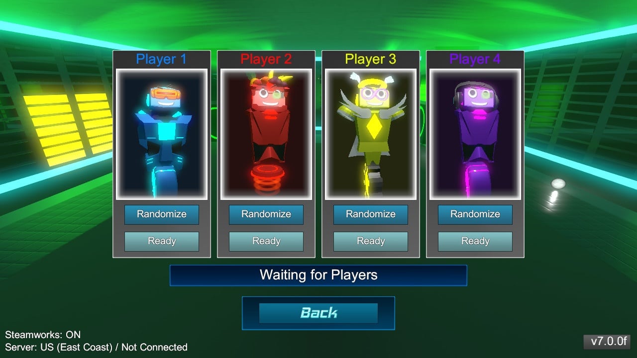 Robot Roller-Derby Disco Dodgeball – игра в вышибалу с метательным выстрелом при помощи одного удара и плавным перемещением на скейтборде. Локации созданы в виде танцевальных клубов и наполнены неоновыми светильниками. Процесс сочетает элементы уникального и волнующего шутера от первого лица с элементами спортивных соревнований.