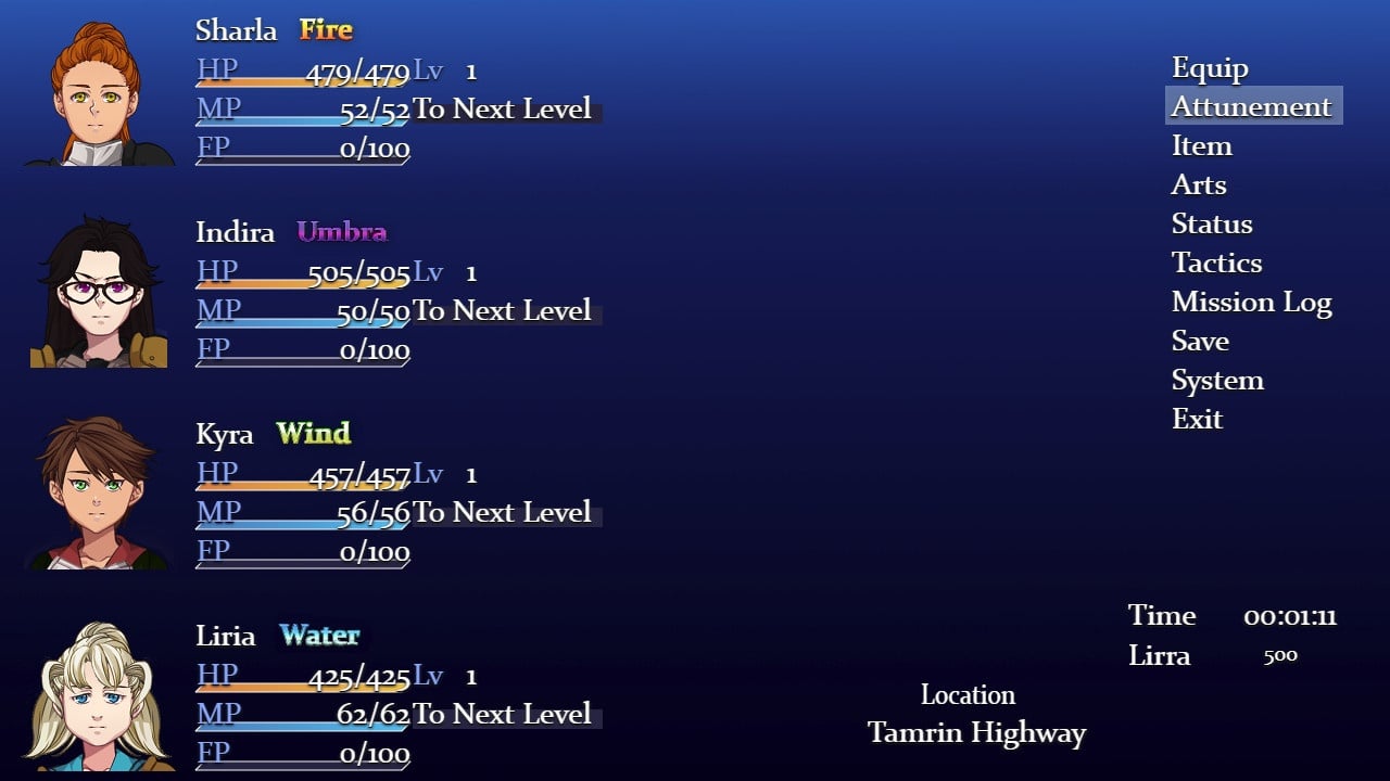 Действия инди-проекта происходят в городе Сантабель. Кира, Индира, Лирия и Шарла вступают в специальный отряд арбитров. Им предстоит раскрыть заговоры и спасти целую планету. Характеры членов команды и второстепенных персонажей раскрываются через побочные задания. Из сторонних активностей есть рыбалка. Сюжетная кампания рассчитана примерно на 40 часов прохождения. После завершения основной истории появится новая "игра плюс" с дополнительным контентом. Доступно 5 уровней сложности.