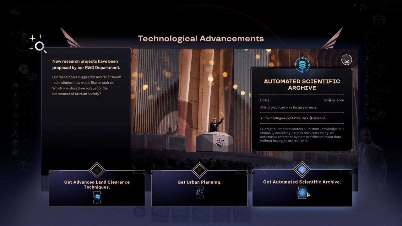 Марс предоставит редкие и уникальные металлы, а также элементы, благодаря которым производятся футуристические предметы и технологии. Спроектируйте эффективную транспортную систему между добывающими территориями и постоянно растущими поселениями. Вы будете распространять адаптивные бактерии, выращивать леса и заселять их животными, например, медведями. Каждая форма жизни нуждается в определенных требованиях, но предоставляет стратегические преимущества.