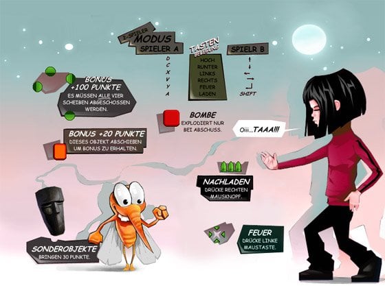 Mosquitos - динамичная аркадная игра, которая призвана развить вашу реакцию. Суть игрового процесса крайне проста: вы находитесь в центре нашествия полчища комаров. Москиты окружают вас со всех сторон. Их рой буквально повсюду! Ваша задача состоит в том, чтобы в кратчайшие сроки избавиться от надоедливой мошкары.