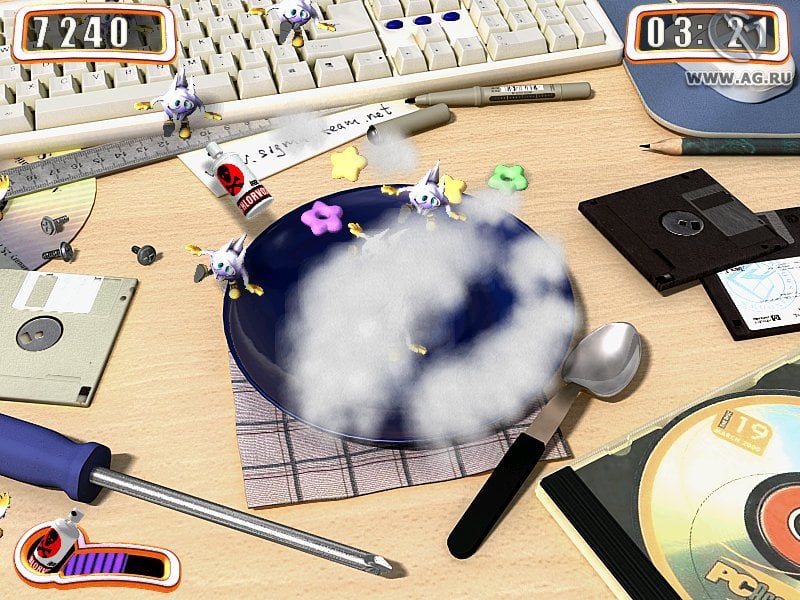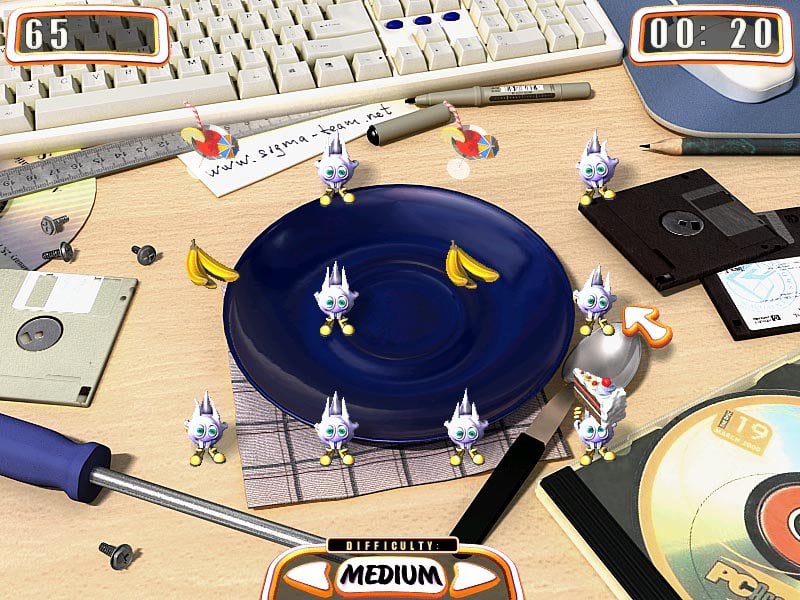 Crazy Lunch - веселая аркада, в которой вам необходимо противостоять разным задирам, покушающихся на еду. Причем они не церемонятся и вылезают на рабочие поверхности, всячески мешая работать и заниматься повседневными делами. Монстрики поглощают абсолютно любую провизию, до которой дотянутся их загребущие ручонки.